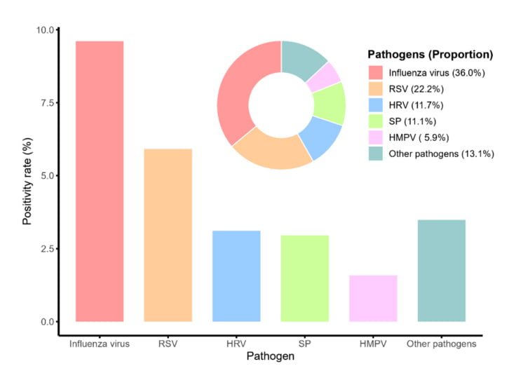 According to data published in BMC infectious diseases, a multi-center clinical epidemiological survey conducted in China in 2024 showed that influenza A virus, influenza B virus, and respiratory syncytial virus are the main pathogens causing respiratory infections and hospitalizations in elderly people over 60 years old. These three viruses together account for over 58% of all types of infectious pathogens.